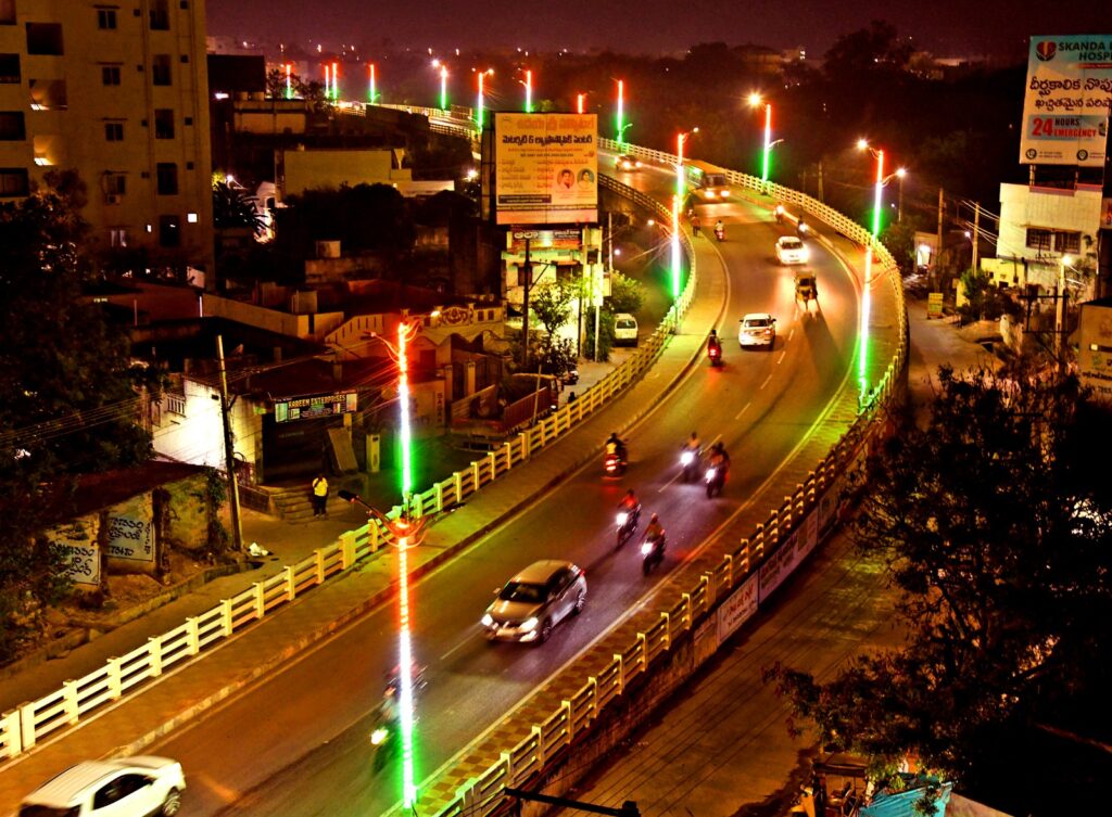 నల్గొండ, ఏపీబీ న్యూస్: నల్గొండ పట్టణంలోని పానగల్ ఫ్లైఓవర్, అద్దంకి బైపాస్ ఫ్లైఓవర్లపై ఇరు పక్కల ఉన్న లైట్లకు నూతనంగా జాతీయ జెండా రంగుల (కాషాయం, తెలుపు, ఆకుపచ్చ) విద్యుత్ లైట్లను నల్గొండ మున్సిపల్ కార్పొరేషన్ మేయర్ బుర్రి చైతన్య శ్రీనివాస్ రెడ్డి సోమవారం సాయంత్రం ప్రారంభించారు. ఈ కొత్త లైట్లతో ఫ్లైఓవర్లు రాత్రిపూట అద్భుతమైన వెలుగుల జిలుగులతో మెరిసిపోతున్నాయి.