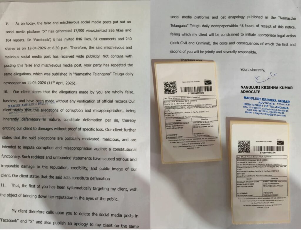 చట్టపరమైన చర్యలు: నిర్ణీత గడువులోగా స్పందించకపోతే సివిల్ మరియు క్రిమినల్ చట్టాల కింద పరువు నష్టం దావా వేస్తామని హెచ్చరించారు.