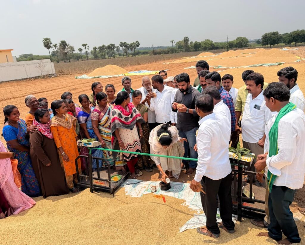 “రైతులు పొలాల వద్దే మధ్యవర్తులకు తక్కువ ధరకు ధాన్యం అమ్ముకుని నష్టపోవద్దు. ప్రభుత్వ కొనుగోలు కేంద్రాల ద్వారానే విక్రయించి గిట్టుబాటు ధర పొందాలి. వ్యవసాయ రంగాన్ని బలోపేతం చేసేందుకు ప్రభుత్వం అన్ని విధాలా కృషి చేస్తోంది” అని సర్పంచ్ వివరించారు. తహసీల్దార్ రామకృష్ణ మాట్లాడుతూ.. ధాన్యం తూకంలో ఎలాంటి జాప్యం జరగకుండా చూడాలని అధికారులను ఆదేశించారు.